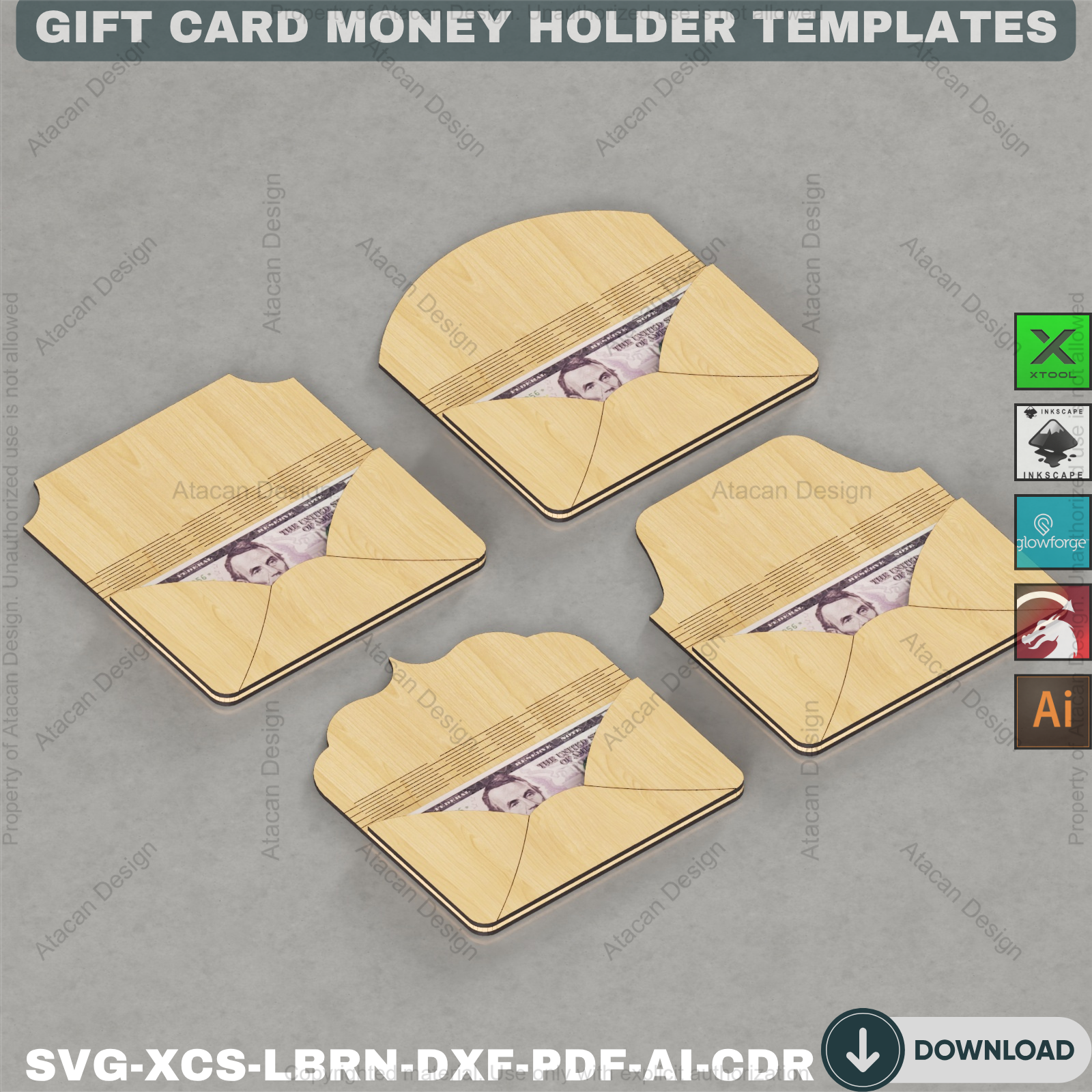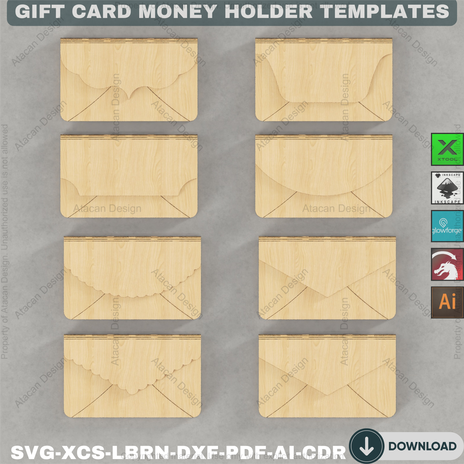 Hey crafters and DIY enthusiasts! Ever wanted to give cash or a gift card in a way that's way more exciting than just handing over an envelope? These wooden money and gift card holder templates are your ticket to creating elegant, envelope-shaped holders that look like mini works of art. Crafted from wood via laser cutting, they feature various stylish flap designs – from classic points to scalloped edges – perfect for adding a handmade charm to your gifts. Whether it's for a wedding, graduation, birthday party, holiday surprise, or any celebration, these holders make your presents stand out and feel extra special.