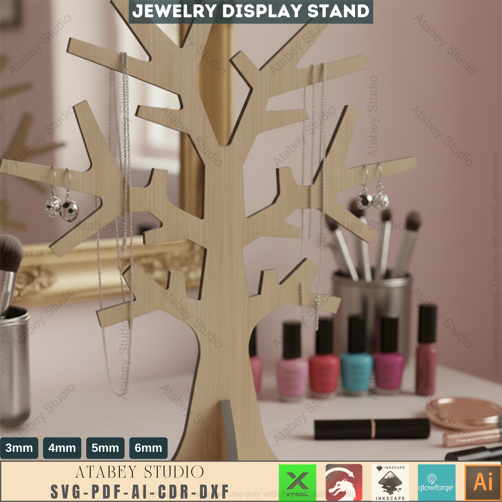 Wooden Jewellery Tree Earring Holder / Standing Trees / Tree Stand Organiser Glowforge SVG DXF Ai CDR Pdf 278